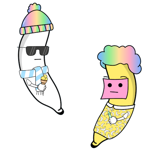 Rotten Bananas are inspired by my favorite NFT collection Doodles. I really loved all the bright colors and the cute characters so I started drawing cute characters with similar colors. My dad is an Ape and he loves bananas so I decided to make cute and funny looking bananas for all his Ape frens. I worked really hard and for a very long time to make 250 cute drawings and my dad did the dev stuff to turn them into 10000 NFTs on ApeChain. I hope you like my Rotten Bananas and have a whole lot of fun collecting them.